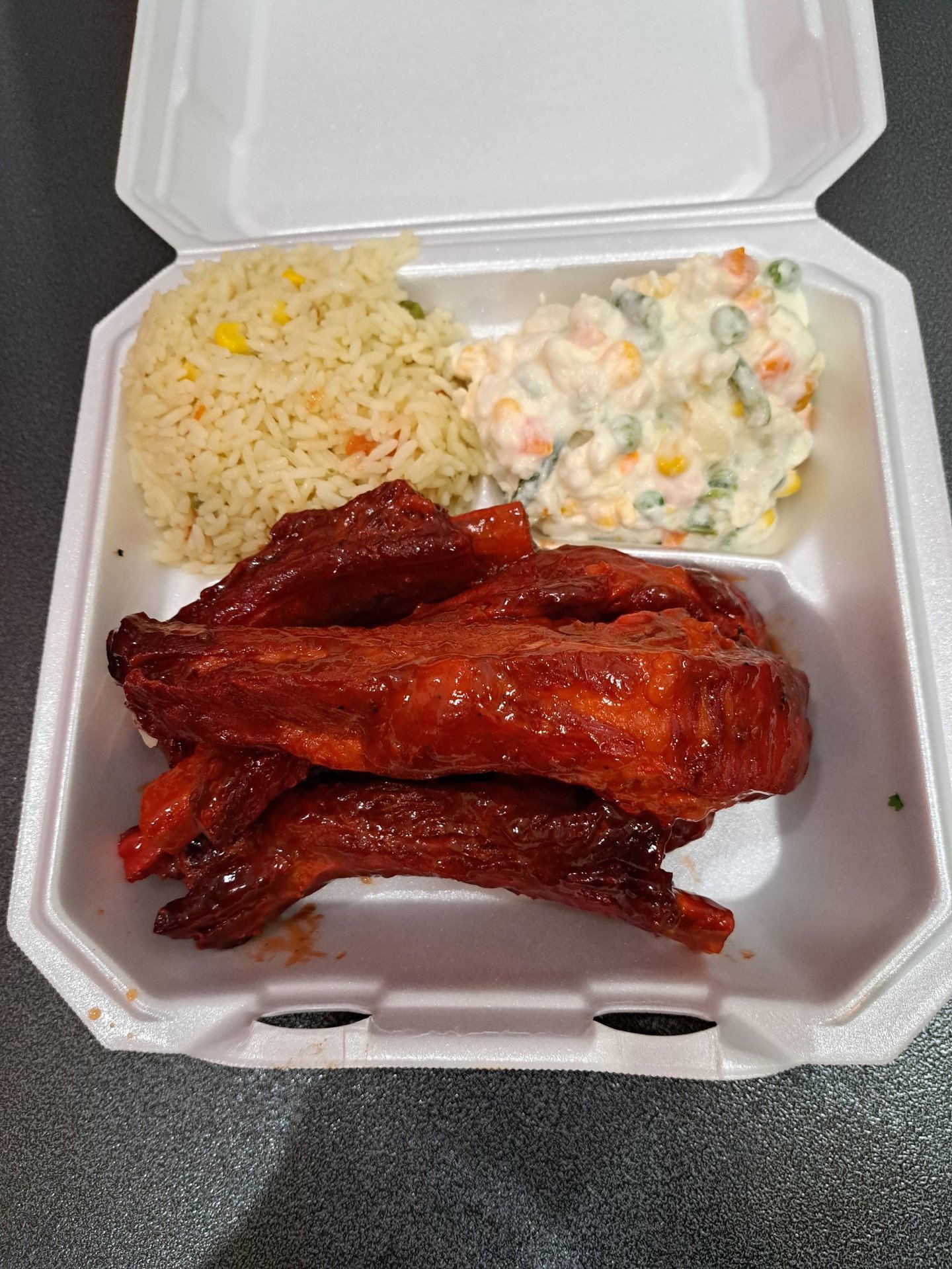 Beef ribs, 4 spicy wings and 4 BBQ wings. Served with wings.